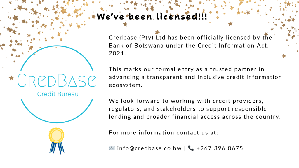 Tsaone Kabomo Last week, we shared the exciting news that Credbase is now a Licensed Credit Bureau—officially recognised and regulated to operate within Botswana’s financial system. But what exactly does that mean? And why should consumers, lenders, and businesses care? Let’s break it down. What Is a Credit Bureau? The International Finance Corporation (IFC) defines […]